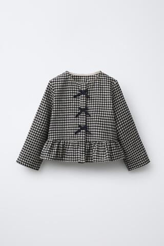 ZARA МЯГКАЯ ФУТБОЛКА В КЛЕТКУ ВИШИ, ЭКРЮ