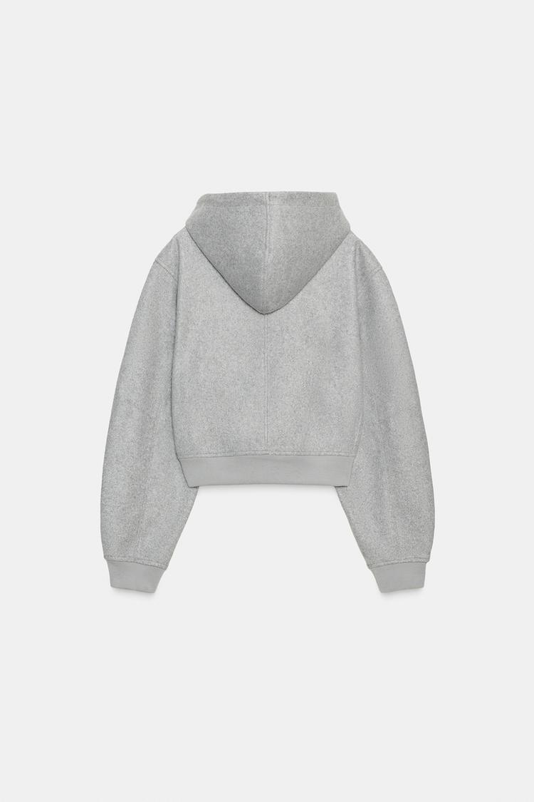 ZARA МЯГКАЯ КУРТКА С ОБЪЕМНЫМИ РУКАВАМИ, СВЕТЛО-СЕРЫЙ