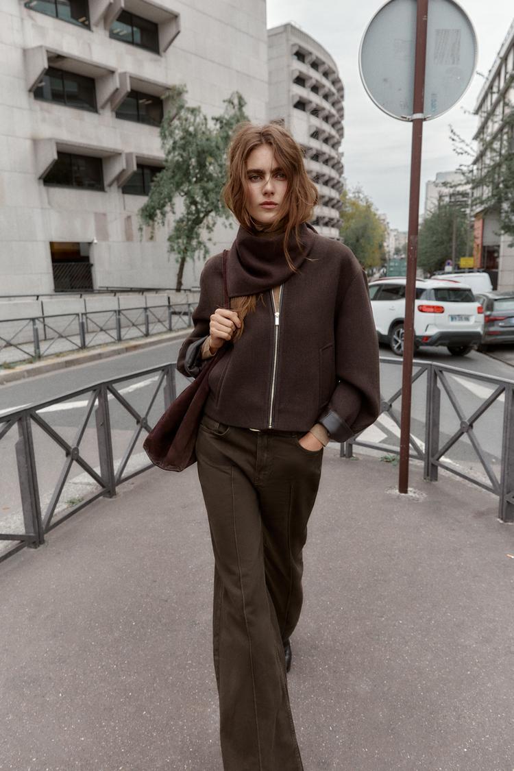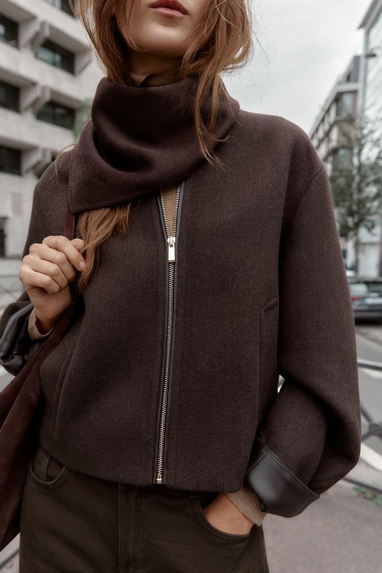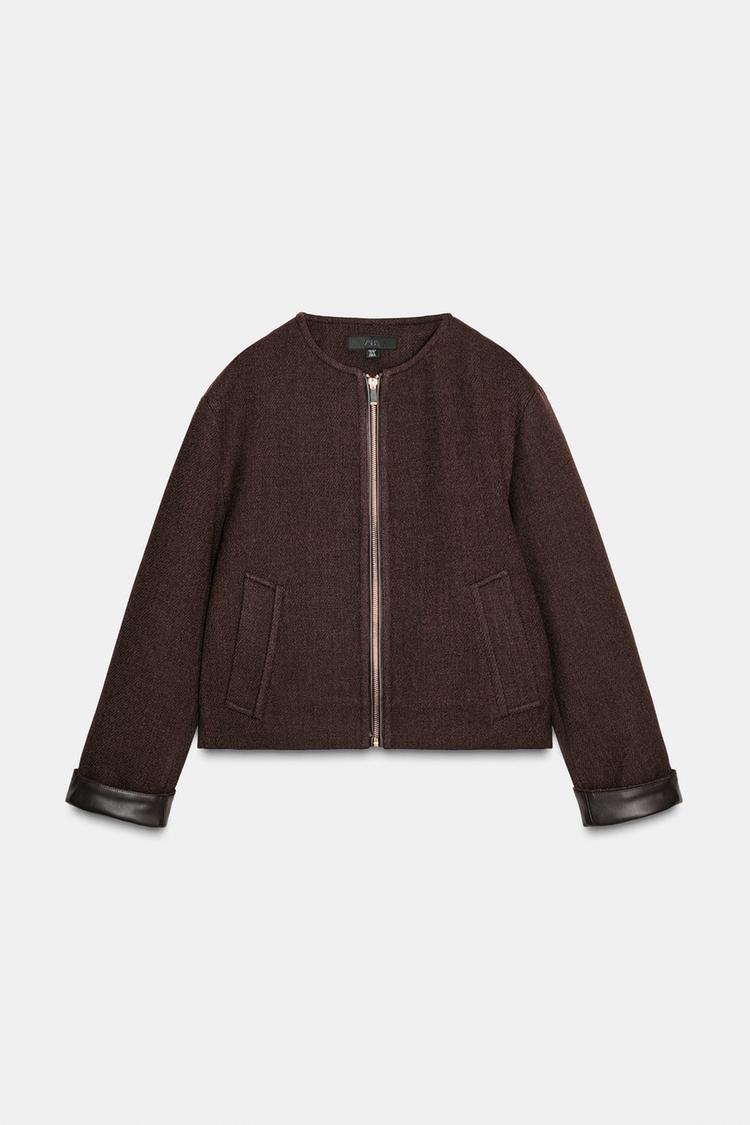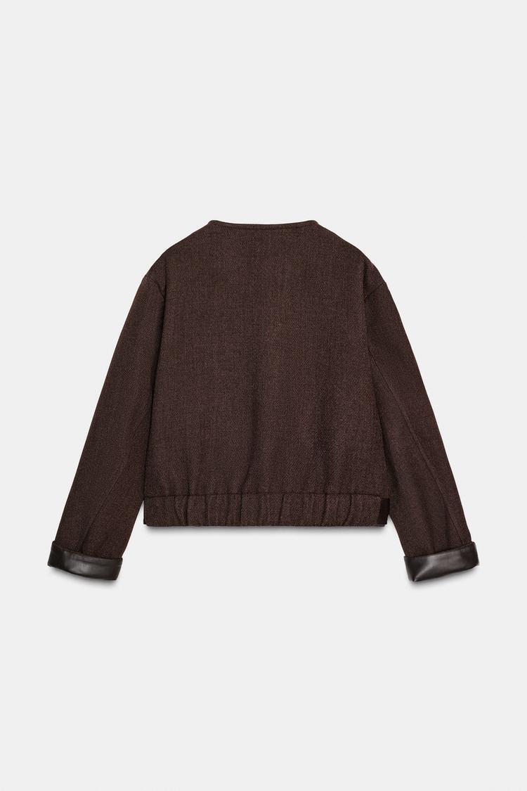 ZARA МЯГКАЯ КУРТКА С ОТДЕЛКОЙ ПОД КОЖУ, КОРИЧНЕВЫЙ