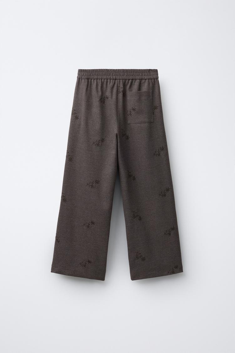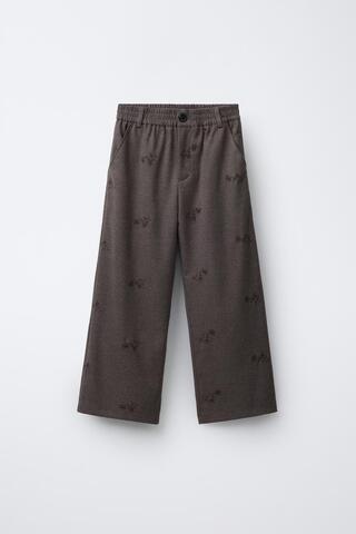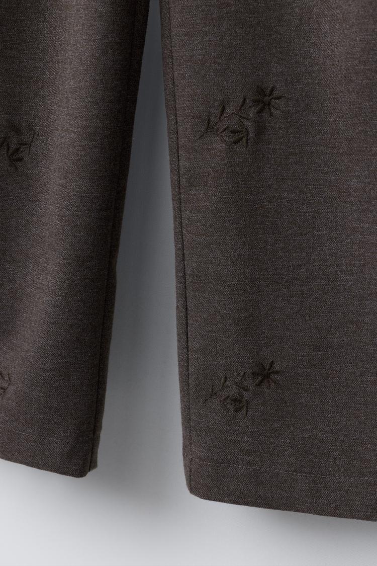 ZARA МЯГКИЕ БРЮКИ BARREL С ВЫШИВКОЙ ЦВЕТОВ, СЕРОВАТО-КОРИЧНЕВЫЙ