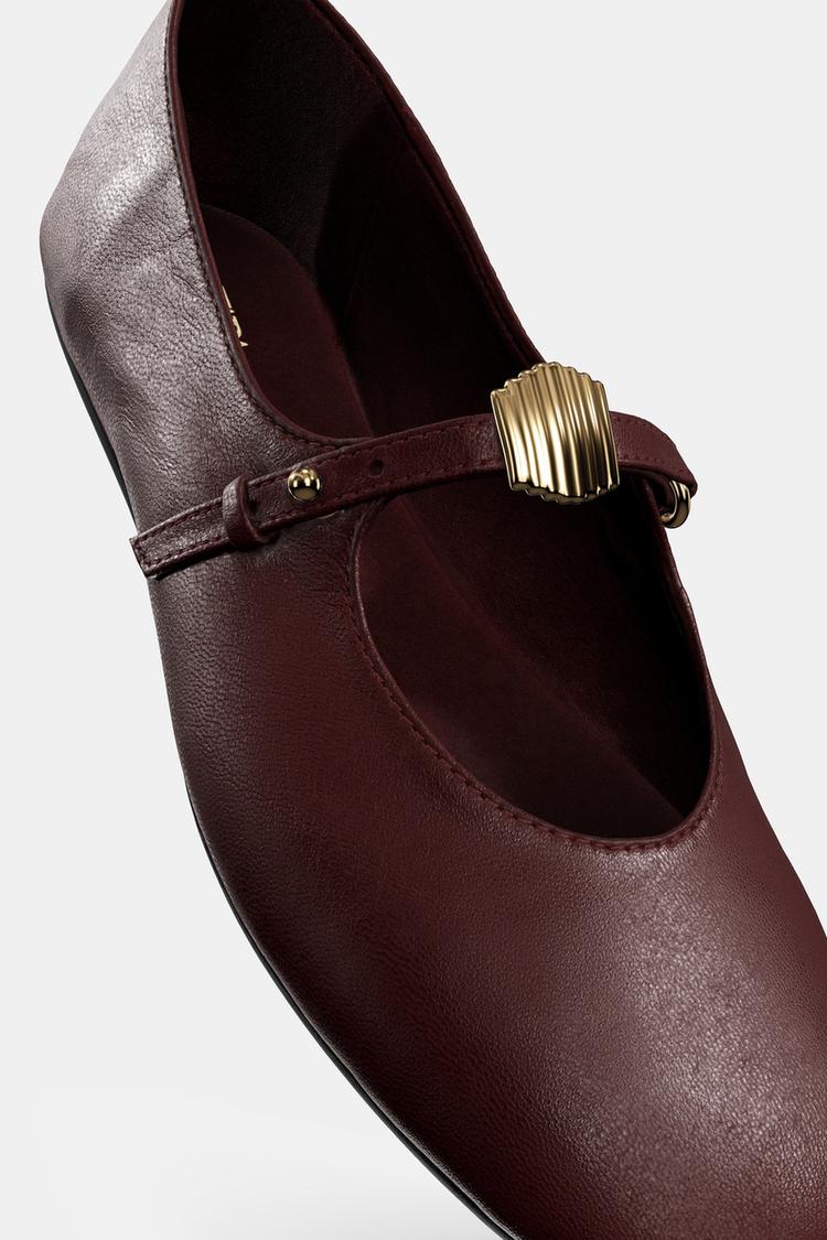 ZARA МЯГКИЕ КОЖАНЫЕ БАЛЕТКИ, БОРДОВО-КРАСНЫЙ
