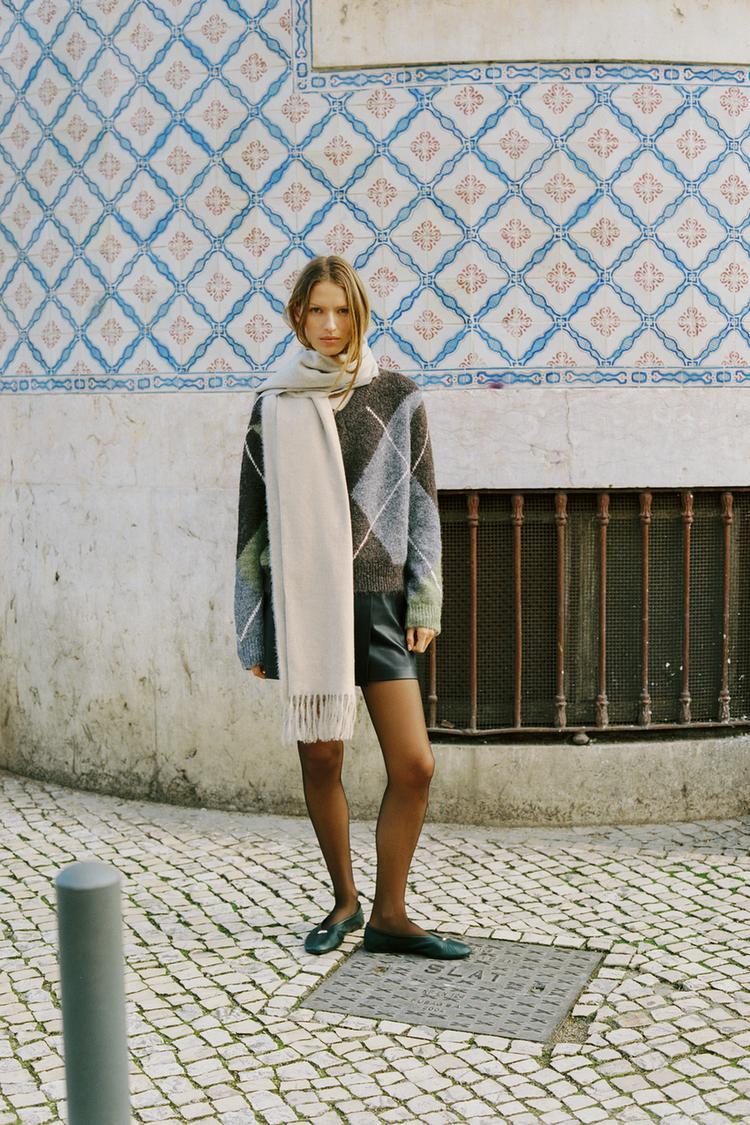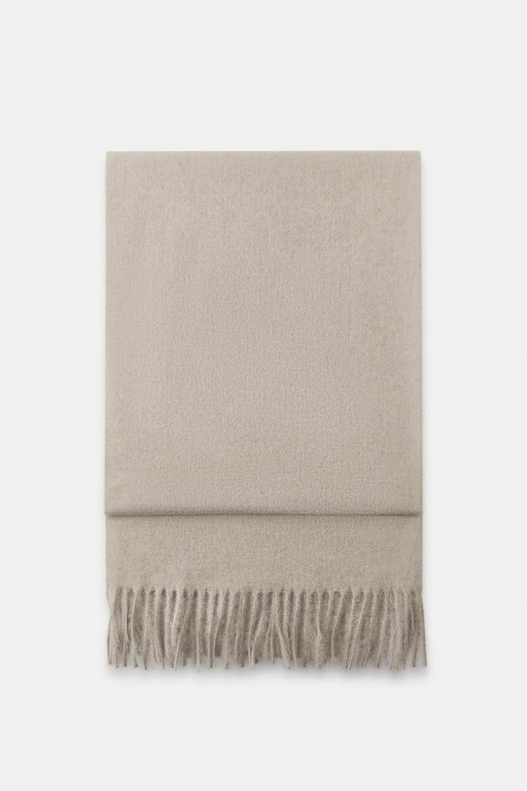 ZARA МЯГКИЙ ШАРФ С БАХРОМОЙ, ЦВЕТ ЛЬДА