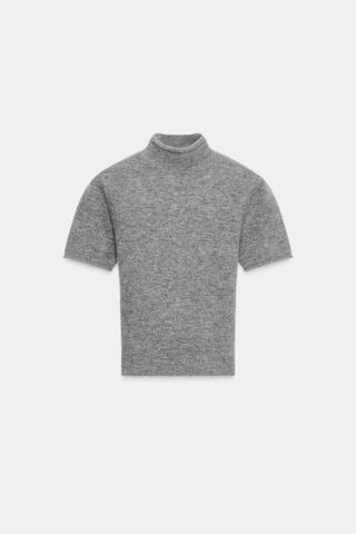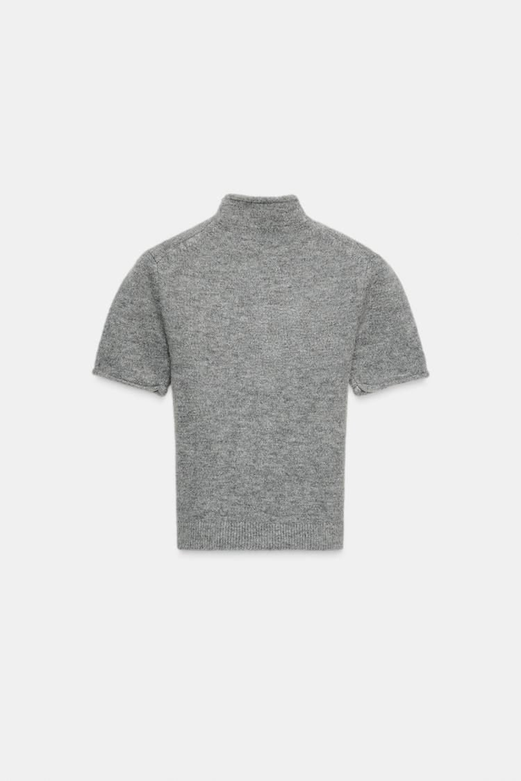 ZARA МЯГКИЙ СВИТЕР С КОРОТКИМИ РУКАВАМИ, СВЕТЛО-СЕРЫЙ