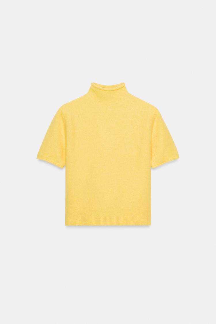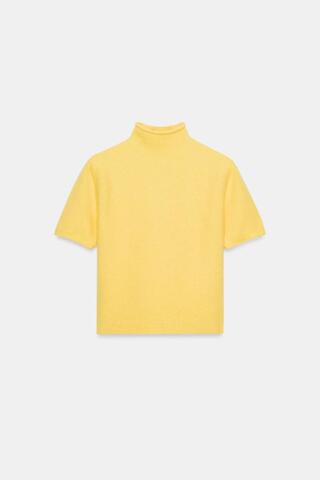 ZARA МЯГКИЙ СВИТЕР С КОРОТКИМИ РУКАВАМИ, ЖЕЛТЫЙ