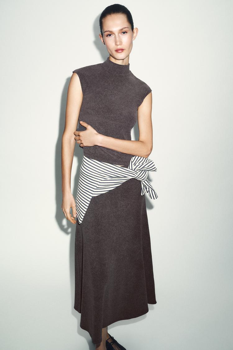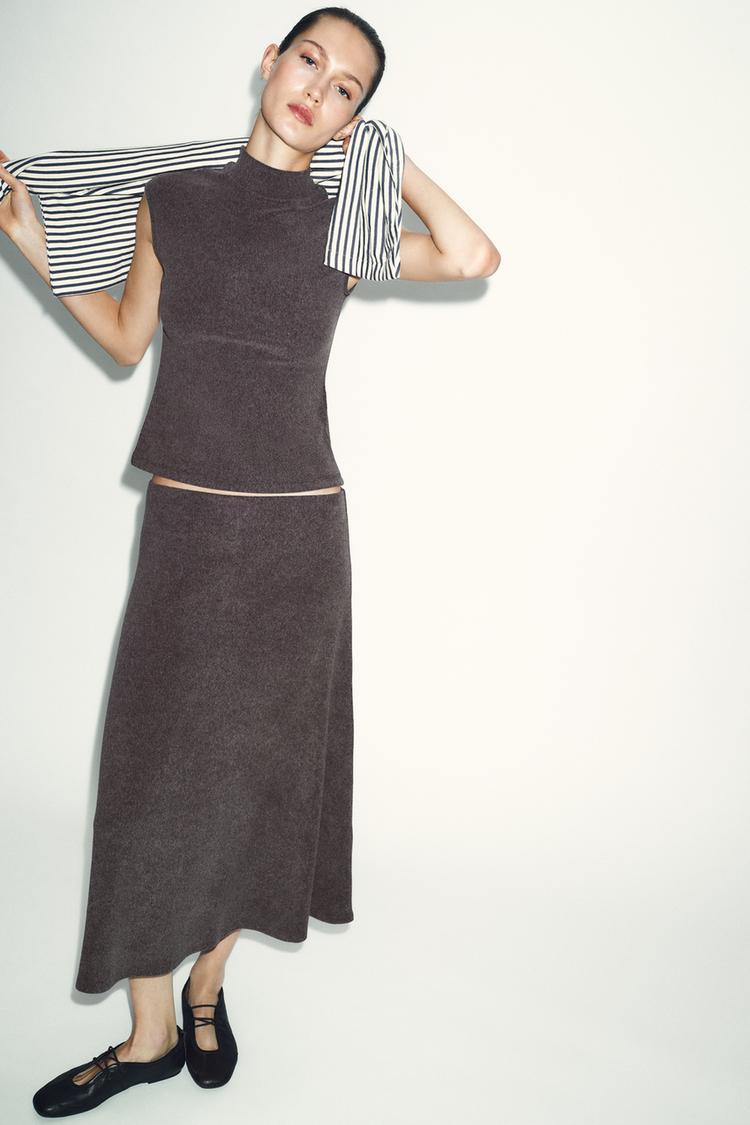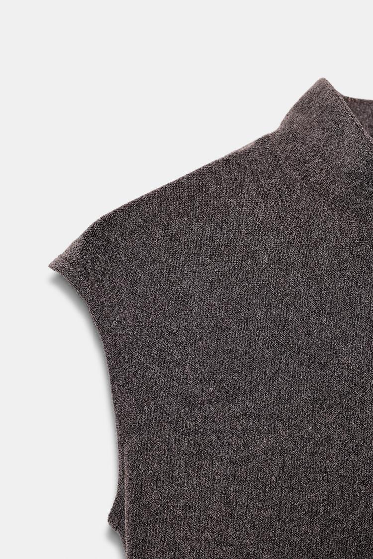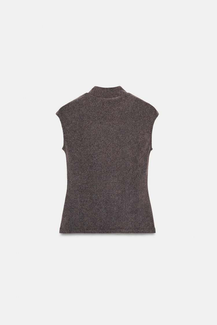 ZARA МЯГКИЙ ТОП С ВЫСОКИМ ВОРОТНИКОМ, КОРИЧНЕВЫЙ МЕЛАНЖ