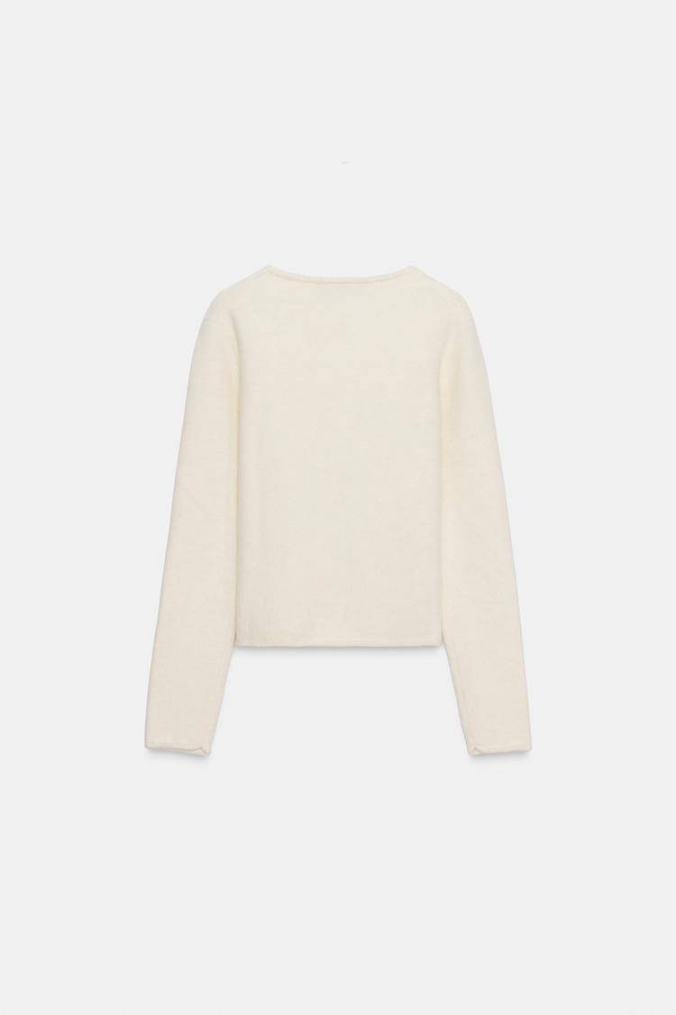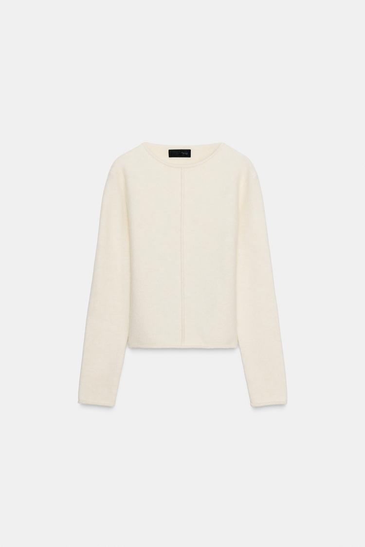ZARA МЯГКИЙ ТРИКОТАЖНЫЙ ДЖЕМПЕР С ДЕКОРАТИВНЫМИ ШВАМИ, ЖЕЛТОВАТО-БЕЛЫЙ