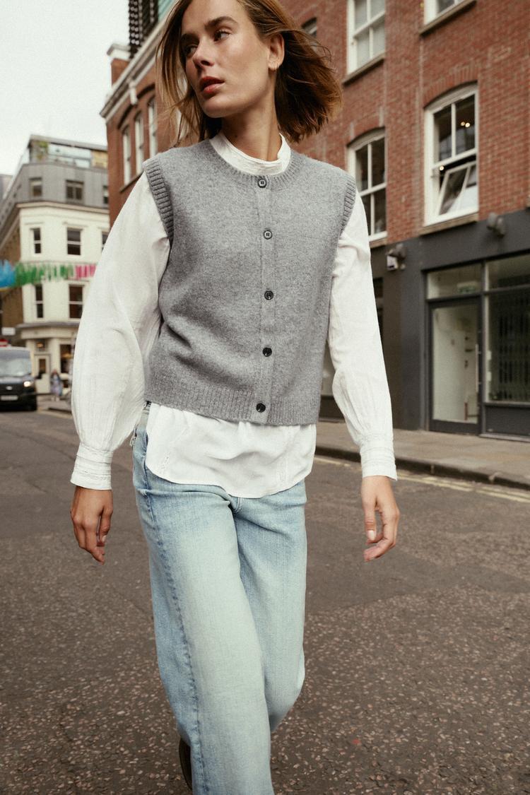 ZARA МЯГКИЙ ТРИКОТАЖНЫЙ ЖИЛЕТ, СЕРЫЙ МЕЛАНЖ