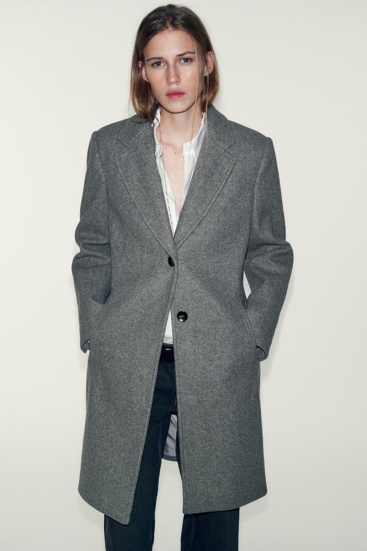 ZARA МЯГКОЕ ПАЛЬТО С ПОДПЛЕЧНИКАМИ, СЕРЫЙ
