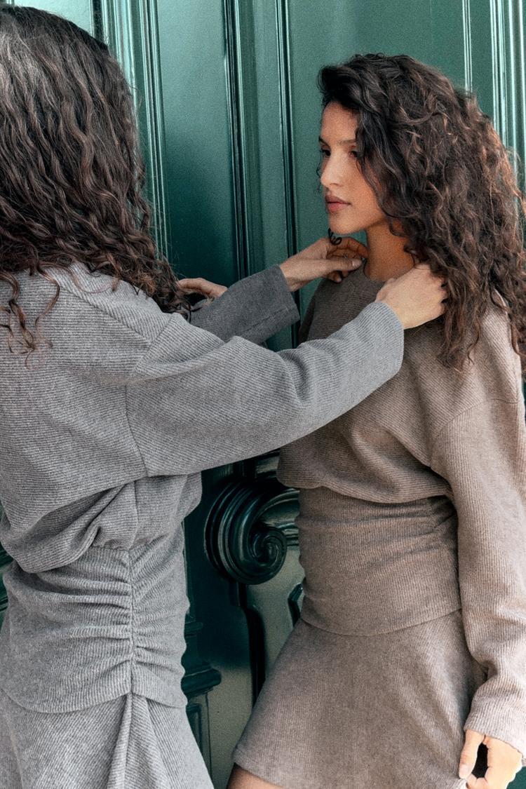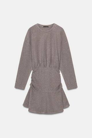 ZARA МЯГКОЕ ПЛАТЬЕ С ПОЯСОМ, РЫЖЕВАТО-КОРИЧНЕВЫЙ