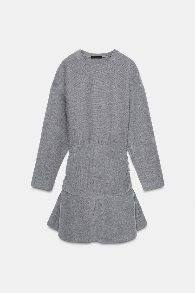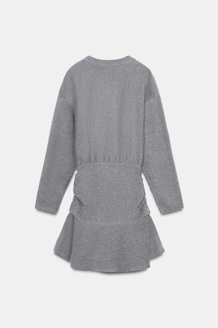 ZARA МЯГКОЕ ПЛАТЬЕ С ПОЯСОМ, СЕРЫЙ МЕЛАНЖ