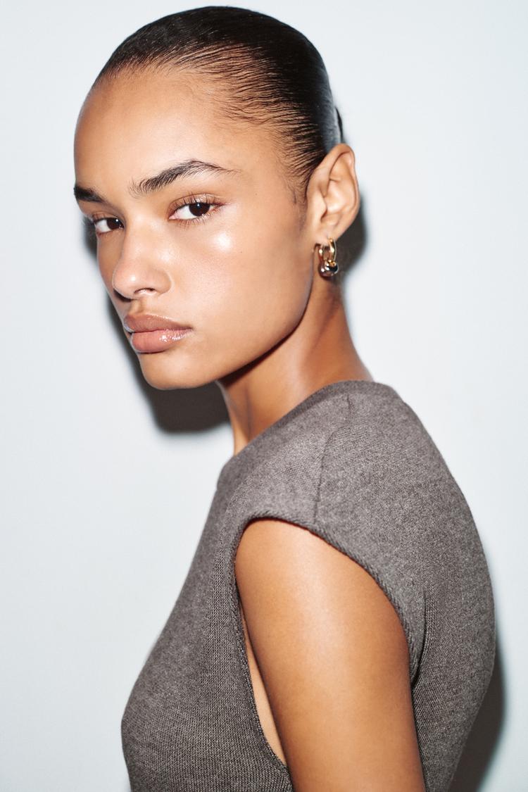 ZARA МЯГКОЕ ПЛАТЬЕ С УЗЛОМ, ТЕМНО-КОРИЧНЕВЫЙ