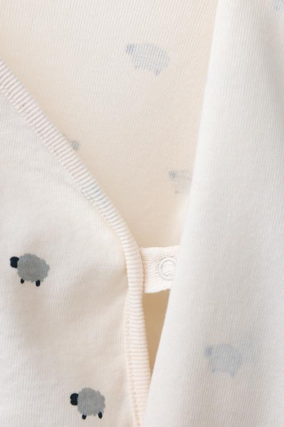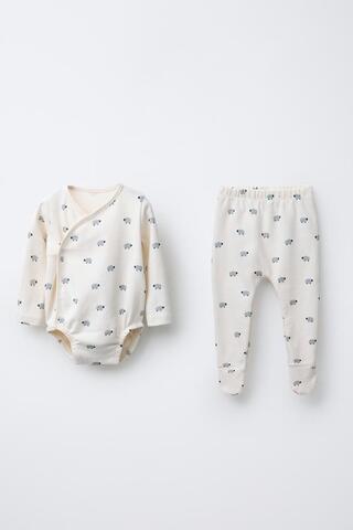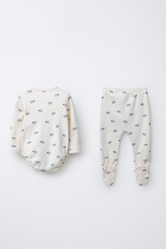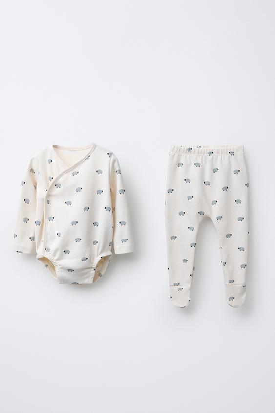 ZARA НАБОР БОДИ И ПОЛЗУНКОВ «ОВЕЧКИ», ЭКРЮ
