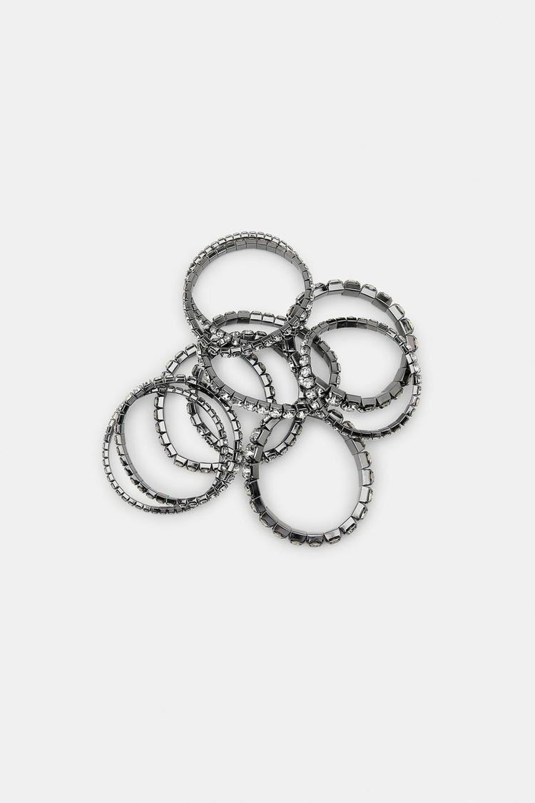 ZARA НАБОР ЭЛАСТИЧНЫХ БРАСЛЕТОВ С УКРАШЕНИЯМИ, АНТРАЦИТОВО-СЕРЫЙ