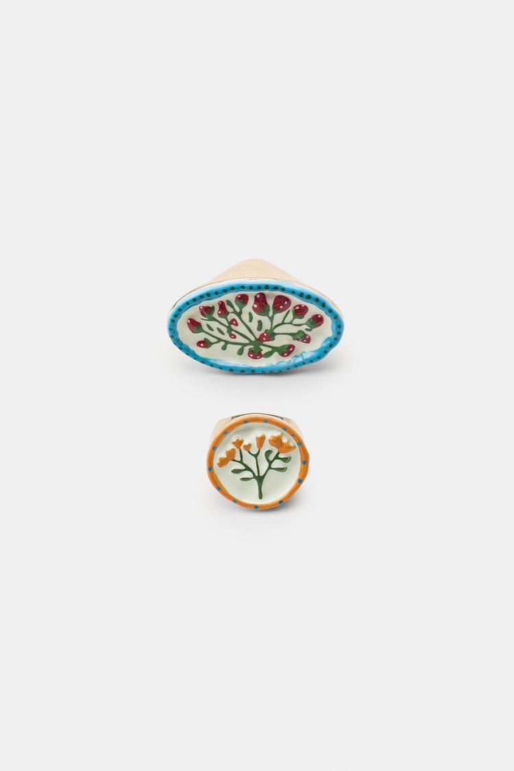 ZARA НАБОР ИЗ 2 КОЛЕЦ «ГЕОМЕТРИЧЕСКИЕ ФОРМЫ И ЦВЕТЫ», ЗОЛОТИСТЫЙ