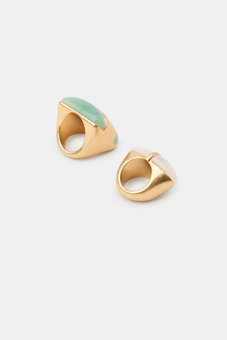 ZARA НАБОР ИЗ 2 КОЛЕЦ С КАМНЕМ ИЗ СМОЛЫ, ЗОЛОТИСТЫЙ