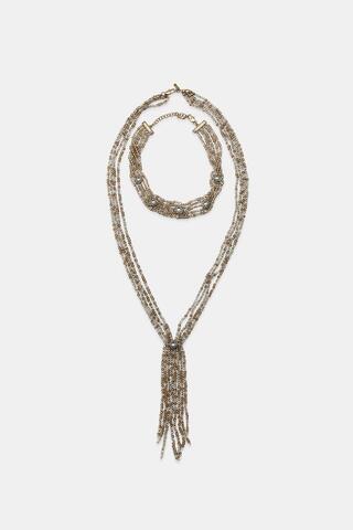 ZARA НАБОР ИЗ 2 ОЖЕРЕЛИЙ-ЧОКЕРОВ С БУСИНАМИ И СТРАЗАМИ, СЕРЫЙ
