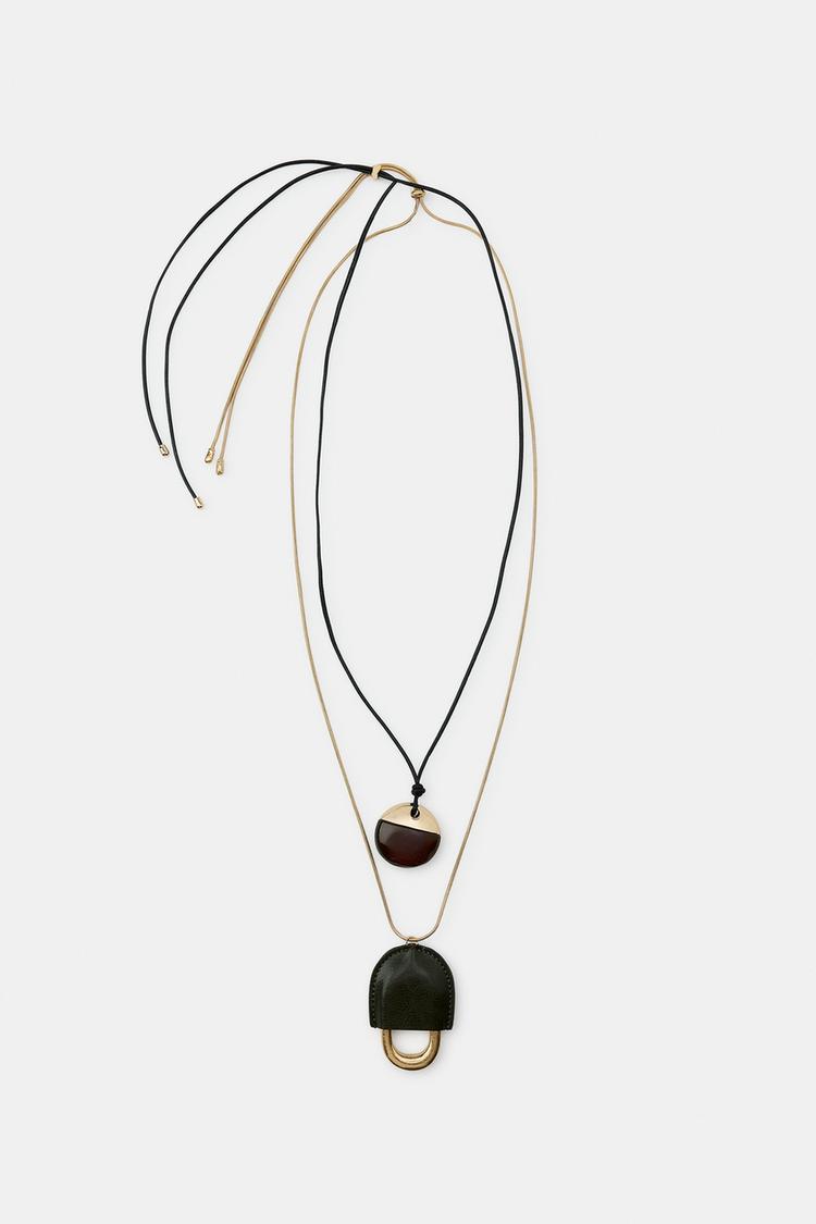 ZARA НАБОР ИЗ 2 ОЖЕРЕЛИЙ КОЖА И СМОЛА, ЗОЛОТИСТЫЙ