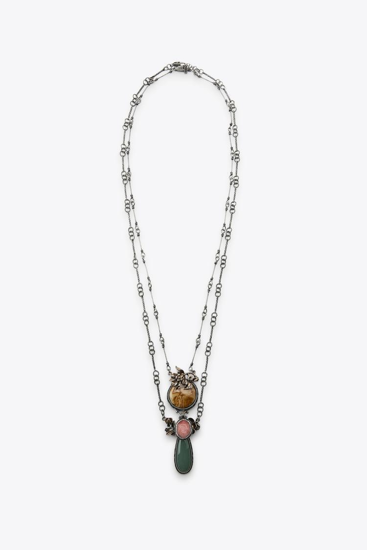 ZARA НАБОР ИЗ 2 ОЖЕРЕЛИЙ С ЦВЕТАМИ И КАМНЯМИ, АНТРАЦИТОВО-СЕРЫЙ