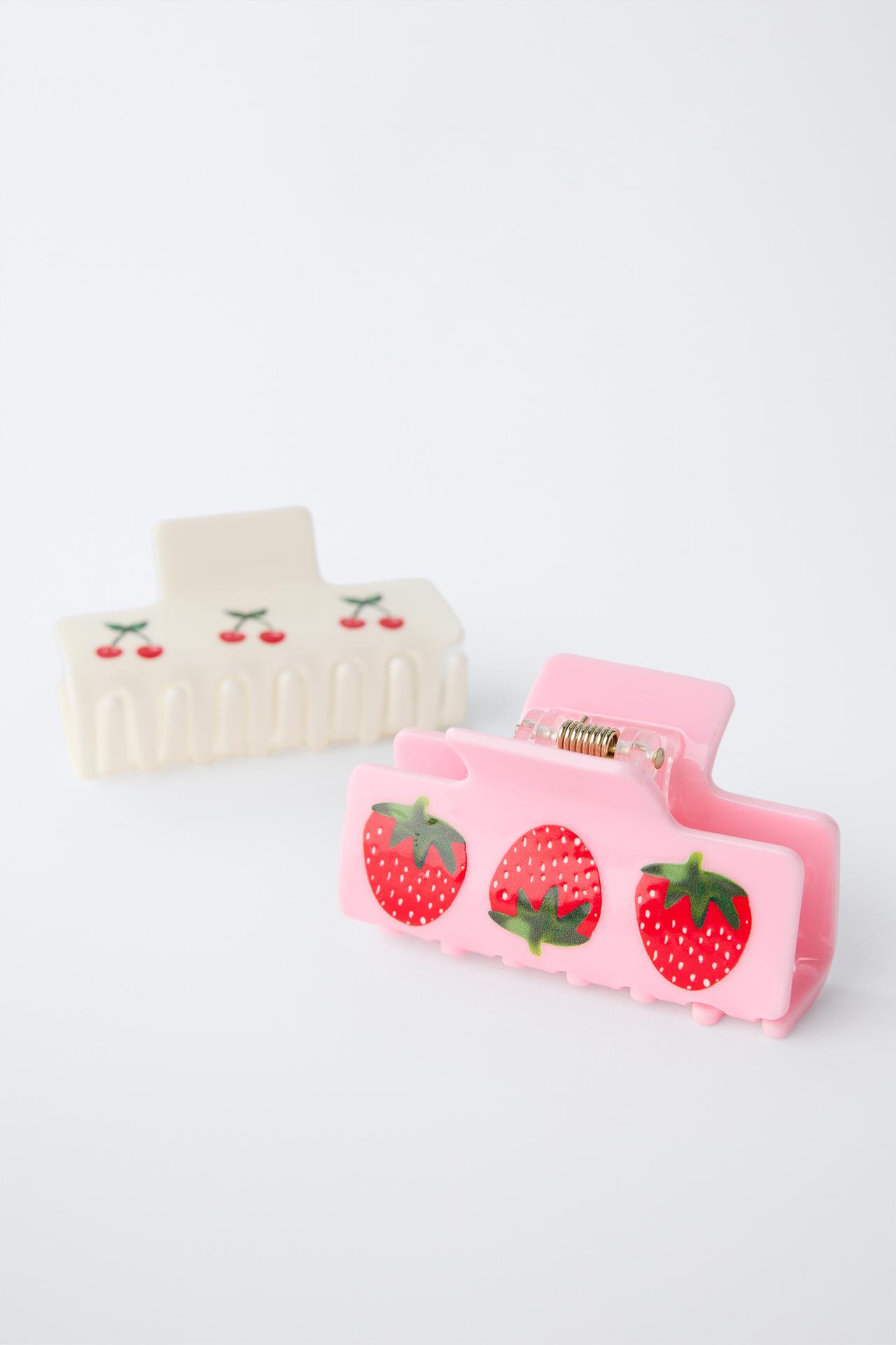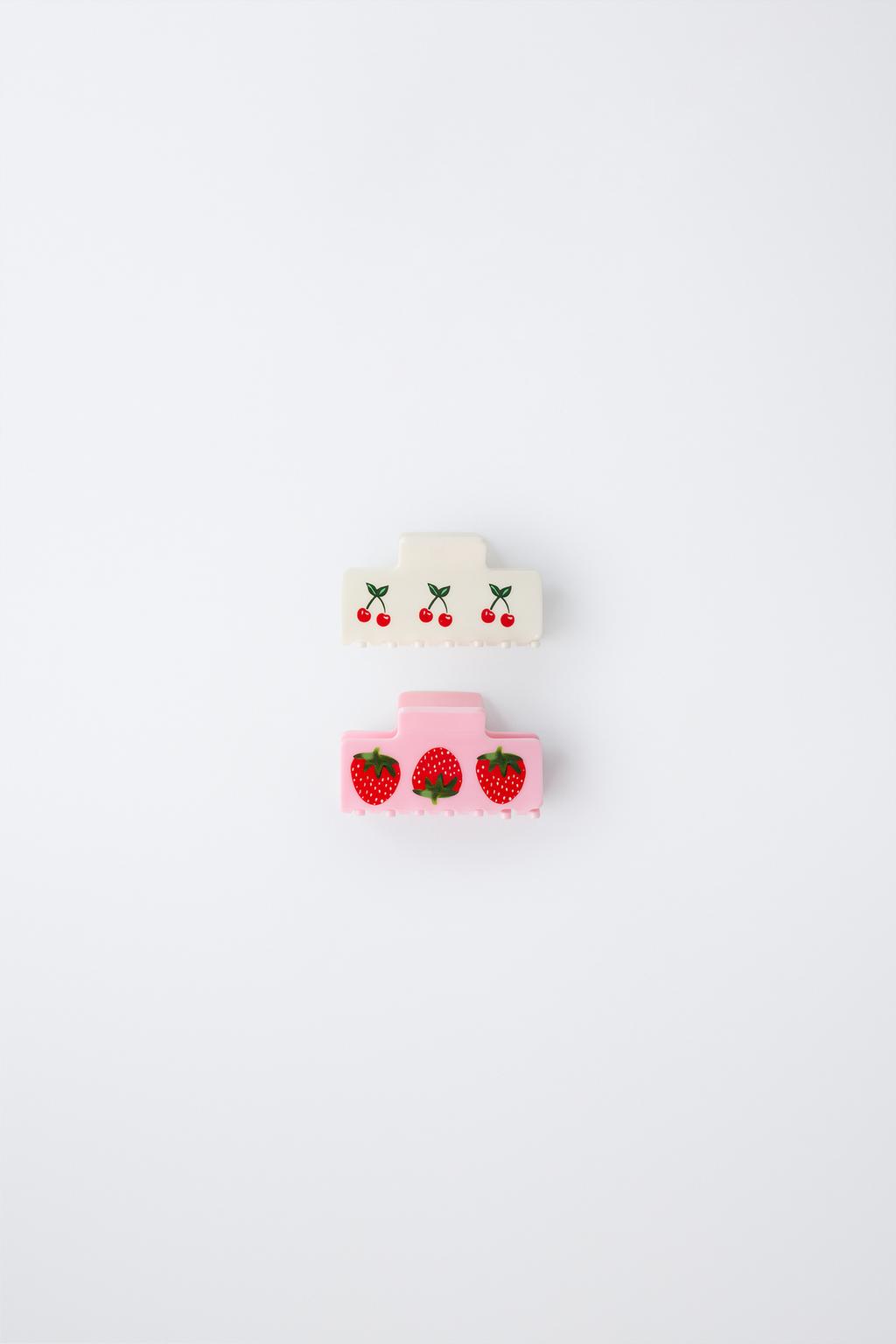 ZARA НАБОР ИЗ 2 ЗАКОЛОК «КЛУБНИКА И ВИШНЯ», РОЗОВЫЙ