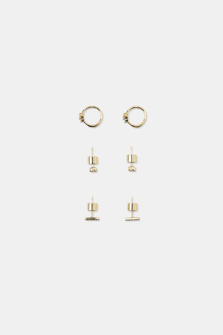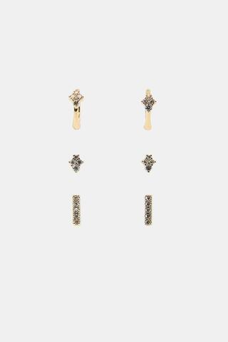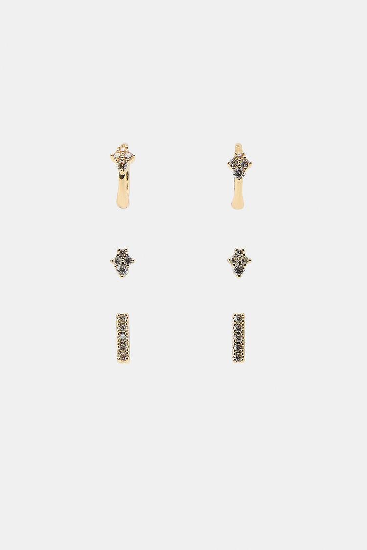 ZARA НАБОР ИЗ 3 МИНИМАЛИСТИЧНЫХ СЕРЕГ СО СТРАЗАМИ, ЗОЛОТИСТЫЙ
