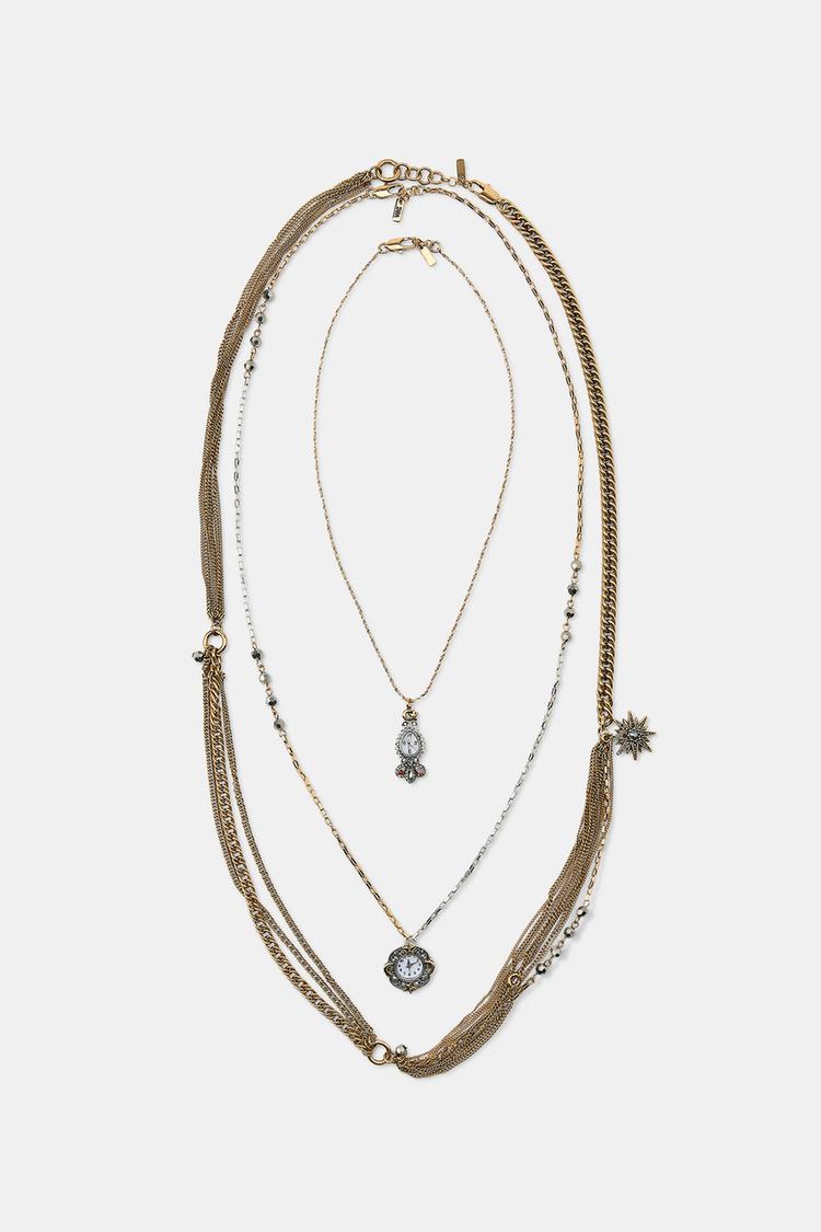 ZARA НАБОР ИЗ 3 ОЖЕРЕЛИЙ С ПОДВЕСКАМИ-ЧАСАМИ, ЗОЛОТОЙ/СЕРЕБРЯНЫЙ