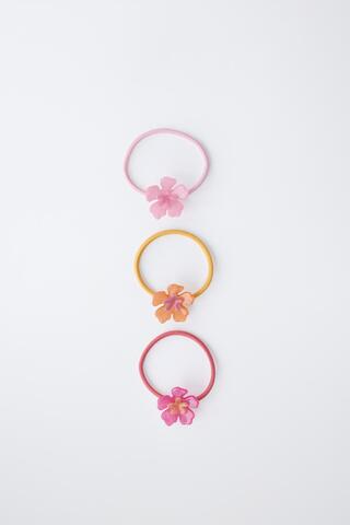 ZARA НАБОР ИЗ 3 РЕЗИНОК ДЛЯ ВОЛОС «ЦВЕТОК ГИБИСКУСА», ОТТЕНКИ РОЗОВОГО