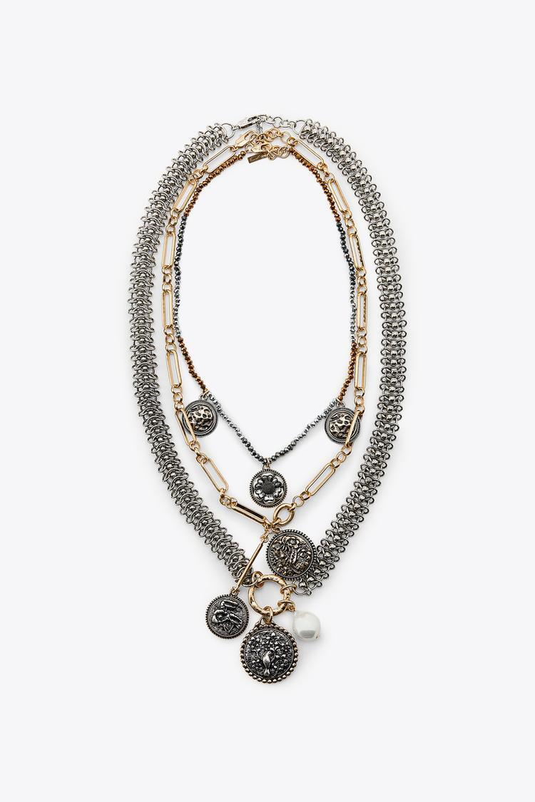 ZARA НАБОР ИЗ 3 ЦЕПОЧЕК С МЕДАЛЬОНАМИ, ЗОЛОТОЙ/СЕРЕБРЯНЫЙ