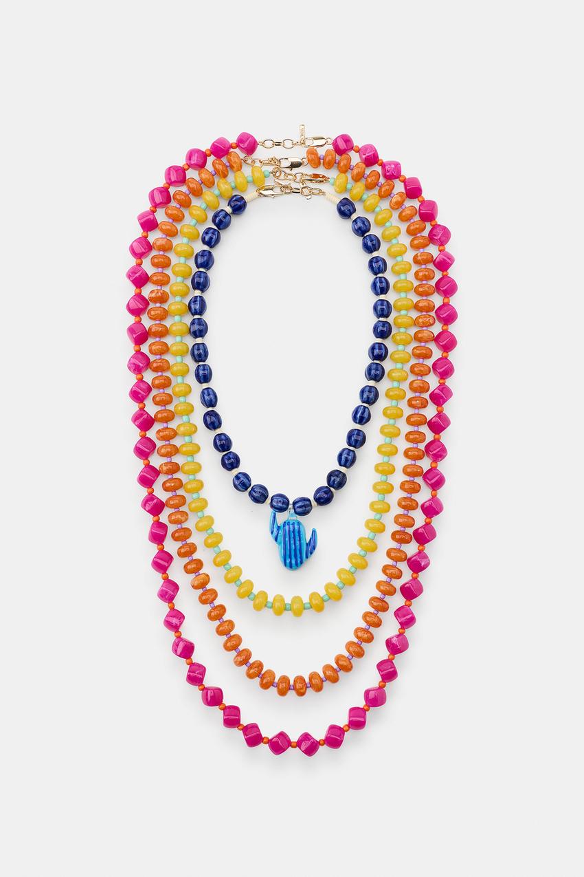 ZARA НАБОР ИЗ 4 КОЛЬЕ С БУСИНАМИ И КАКТУСАМИ, РАЗНОЦВЕТНЫЙ