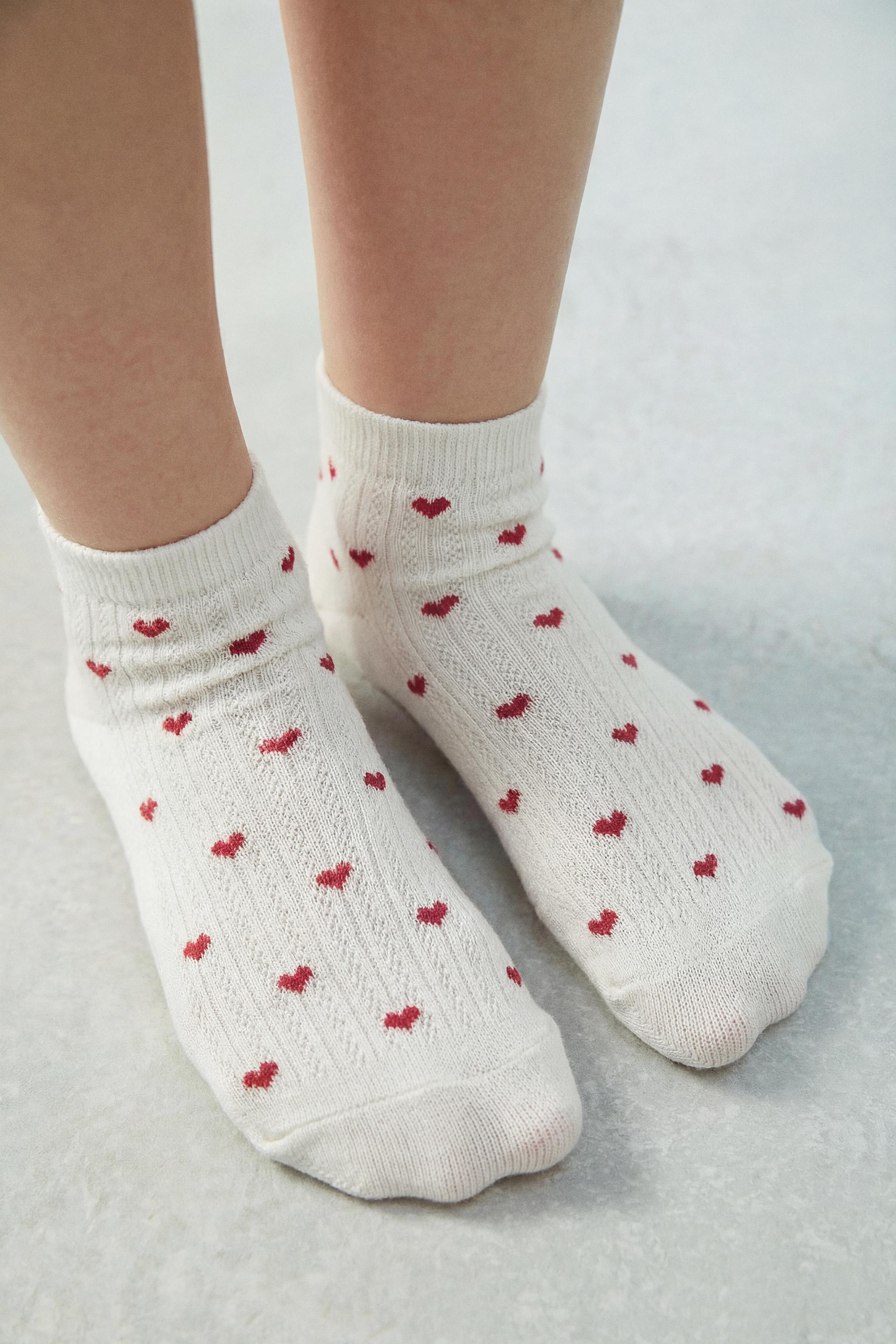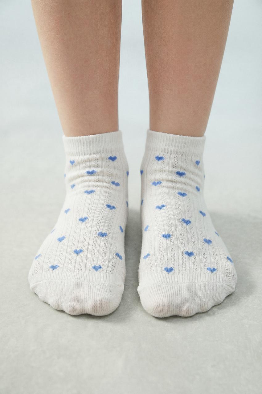 ZARA НАБОР ИЗ 4 ПАР КОРОТКИХ НОСКОВ С СЕРДЕЧКАМИ, БЕЛЫЙ