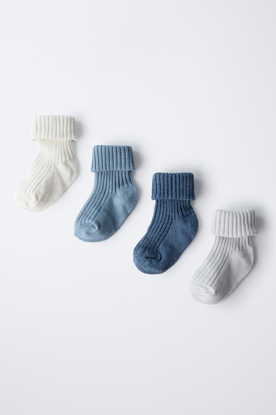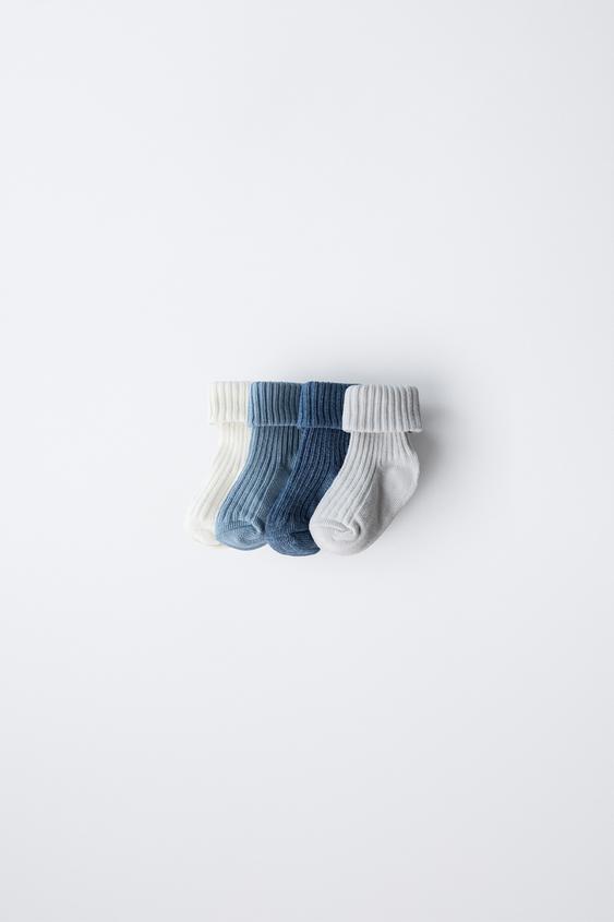 ZARA НАБОР ИЗ 4 ЦВЕТНЫХ НОСКОВ В КОРОБКЕ, СИНИЙ МЕЛАНЖ