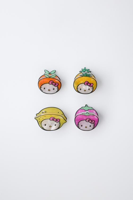 ZARA НАБОР ИЗ 4 ЗАКОЛОК «ФРУКТЫ HELLO KITTY © SANRIO», РОЗОВЫЙ