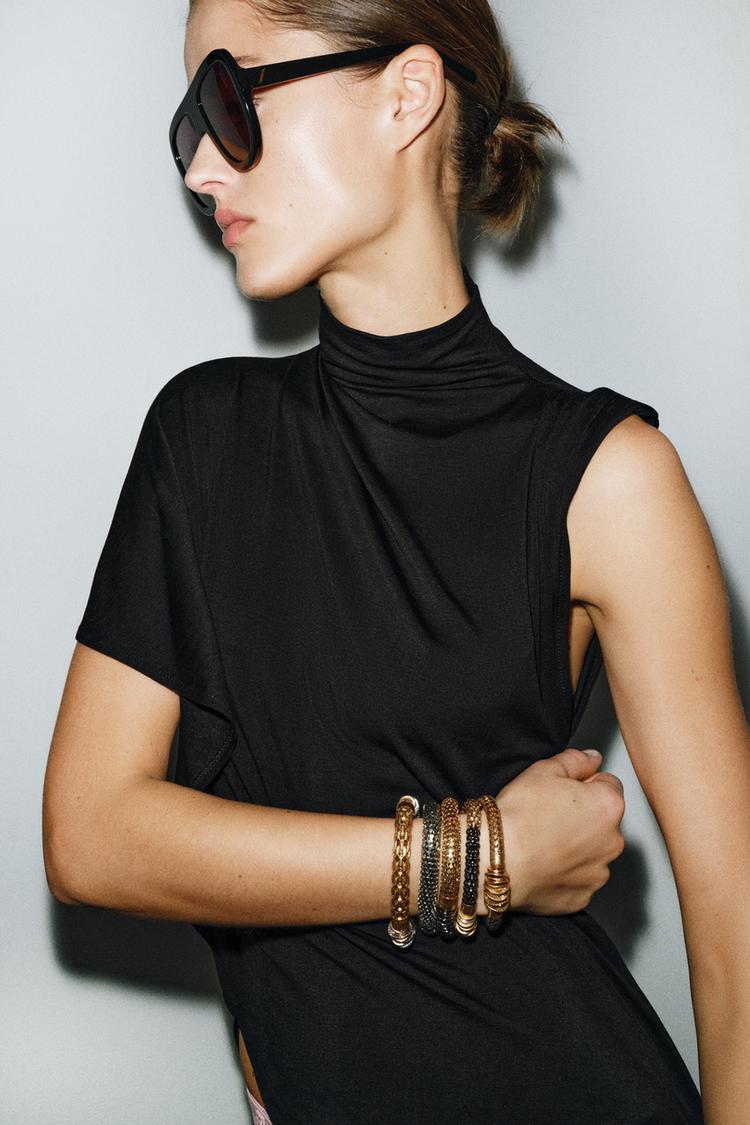 ZARA НАБОР ИЗ 5 ЭЛАСТИЧНЫХ КОМБИНИРОВАННЫХ БРАСЛЕТОВ, ЗОЛОТОЙ/СЕРЕБРЯНЫЙ