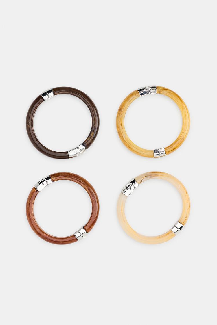ZARA НАБОР ИЗ ЧЕТЫРЕХ ЖЕСТКИХ БРАСЛЕТОВ, КОРИЧНЕВЫЙ