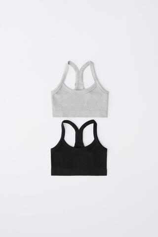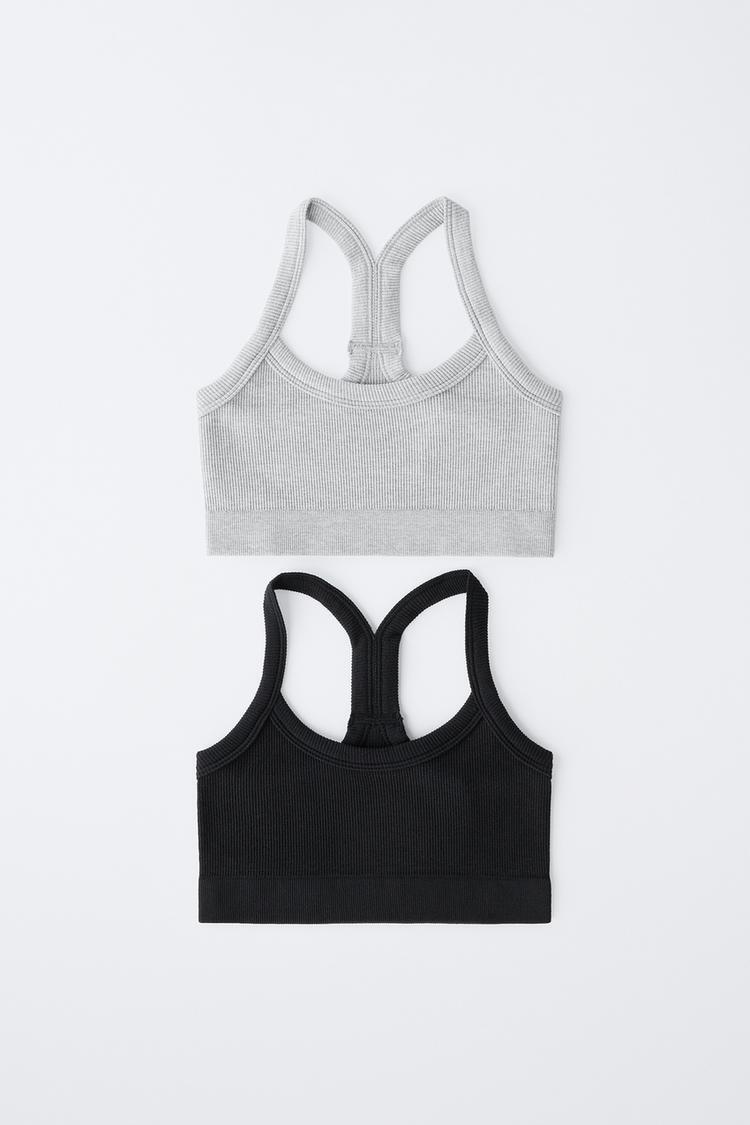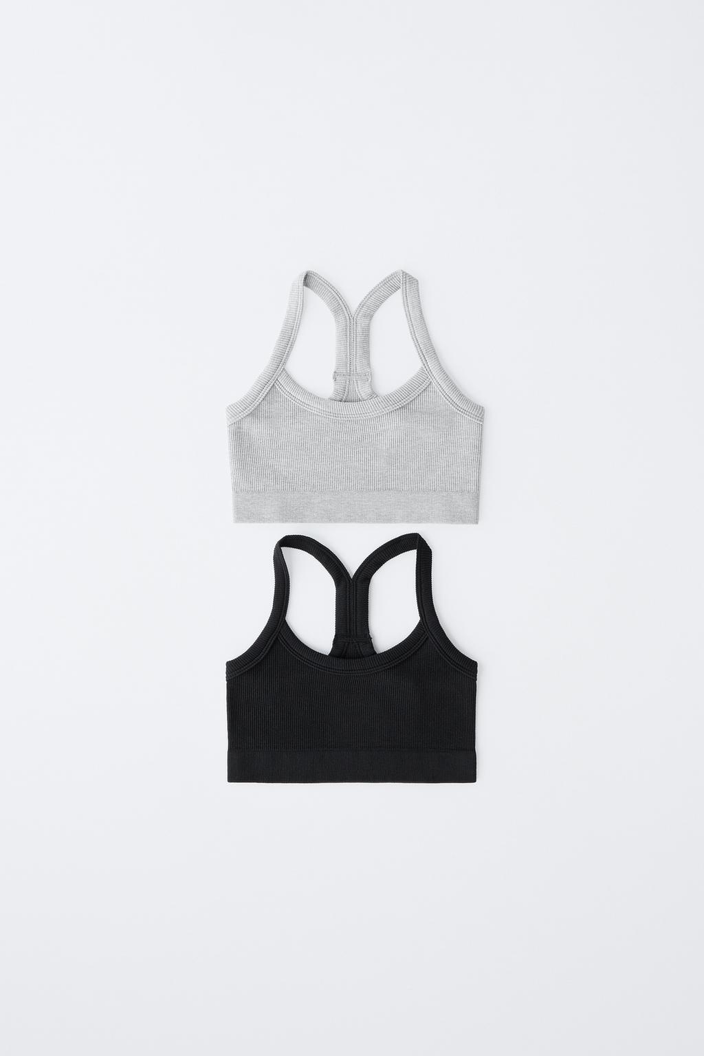 ZARA НАБОР ИЗ ДВУХ БЕСШОВНЫХ ТОПОВ, ЧЕРНЫЙ