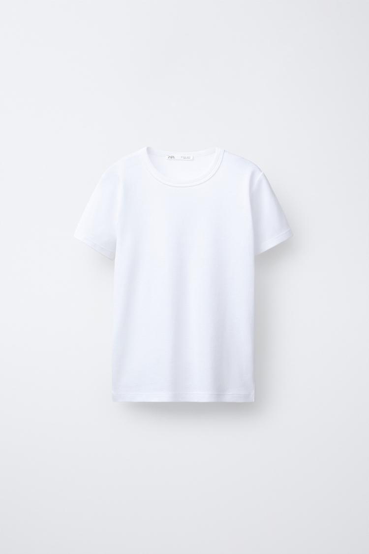 ZARA НАБОР ИЗ ДВУХ ФУТБОЛОК С КОРОТКИМ РУКАВОМ, БЕЛЫЙ