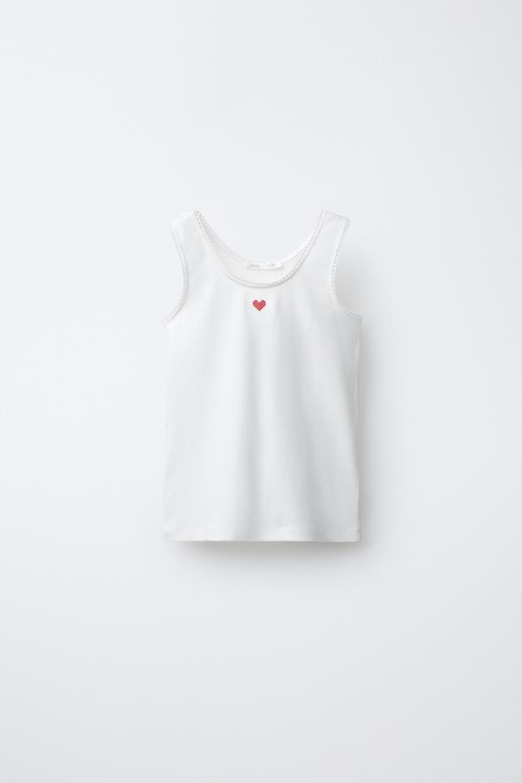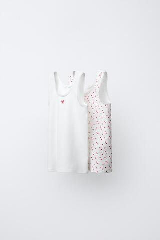 ZARA НАБОР ИЗ ДВУХ ФУТБОЛОК С ПРИНТОМ «СЕРДЦА», ЭКРЮ