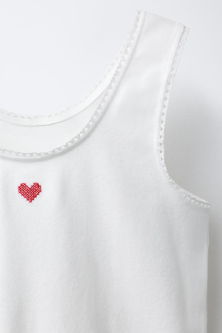 Набор из двух футболок с круглым вырезом и бретелями. С принтом «Сердца» и вышитым сердцем на передней части.