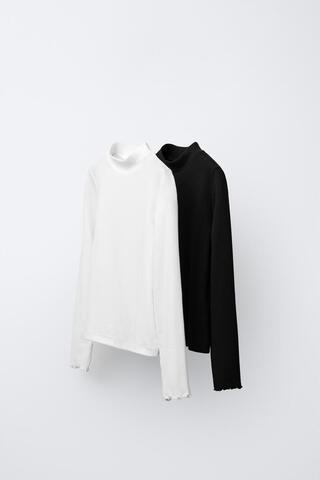 ZARA НАБОР ИЗ ДВУХ ФУТБОЛОК С ВОРОТНИКОМ-СТОЙКОЙ, РАЗНОЦВЕТНЫЙ