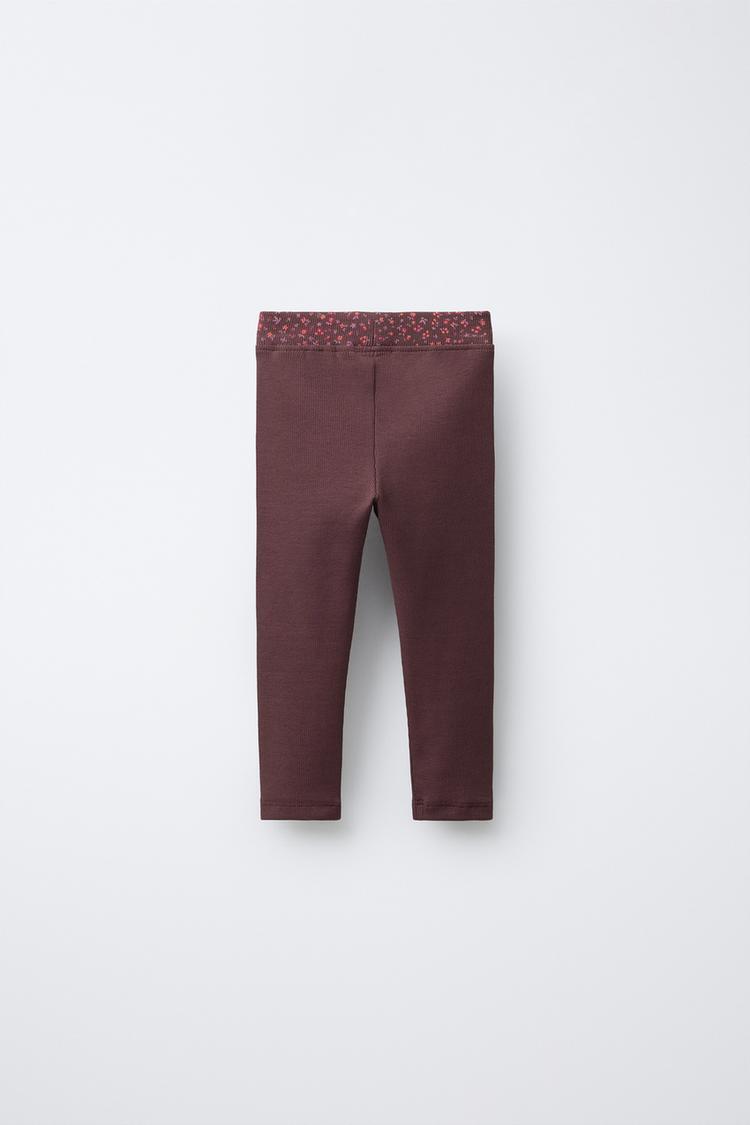 ZARA НАБОР ИЗ ДВУХ ЛЕГИНСОВ С ПРИНТОМ И ОДНОТОННЫХ, КОРИЧНЕВЫЙ