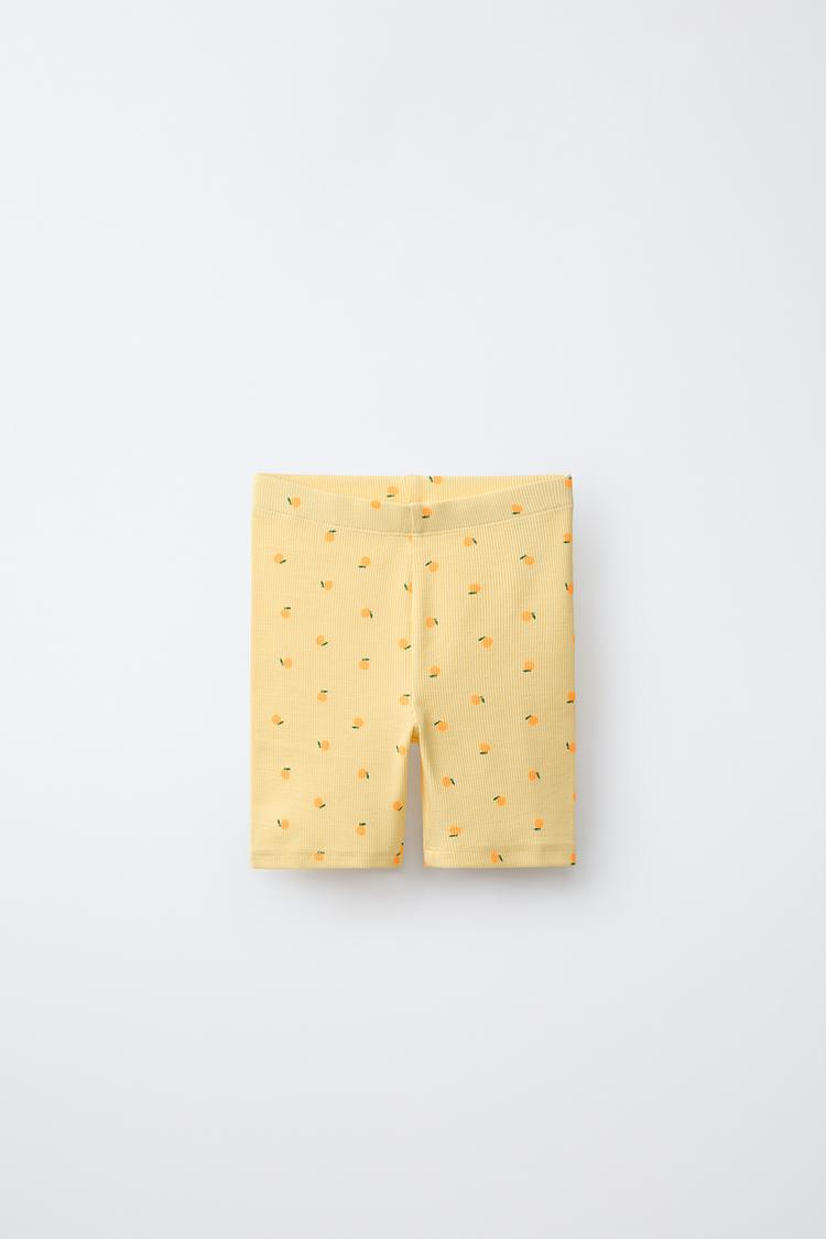 Набор из двух легинсов в рубчик с эластичным поясом. Принт с лимонами и клубникой.