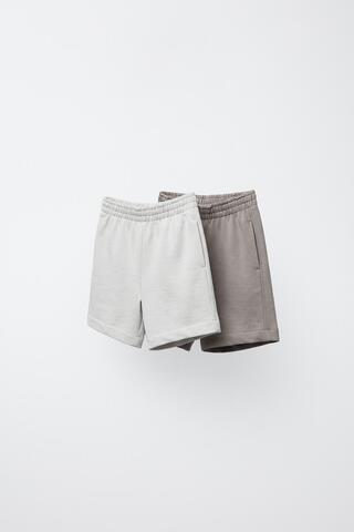 ZARA НАБОР ИЗ ДВУХ ОДНОТОННЫХ БЕРМУД, ЭКРЮ/БЕЖЕВЫЙ