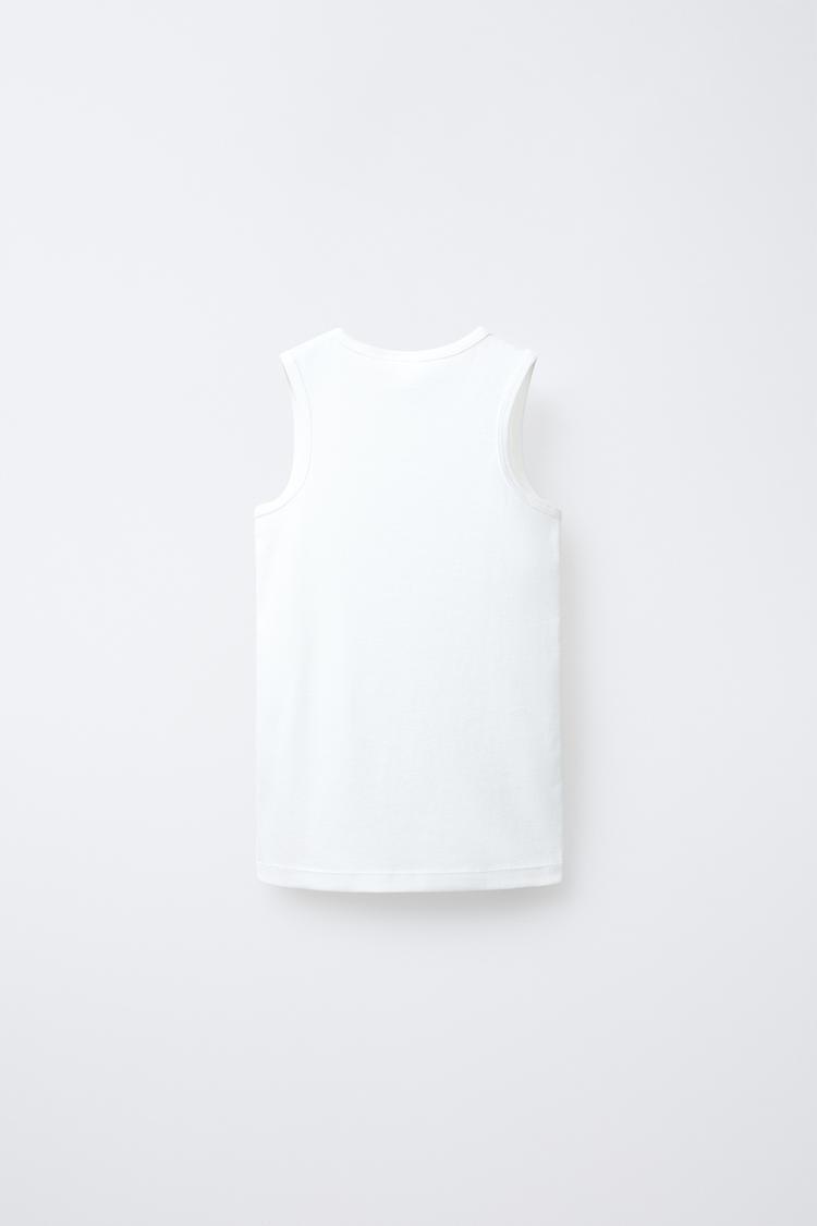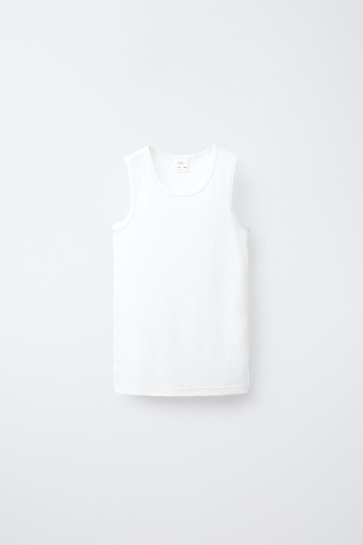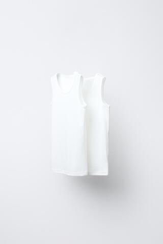 ZARA НАБОР ИЗ ДВУХ ОДНОТОННЫХ ФУТБОЛОК БЕЗ РУКАВОВ, ЖЕЛТОВАТО-БЕЛЫЙ