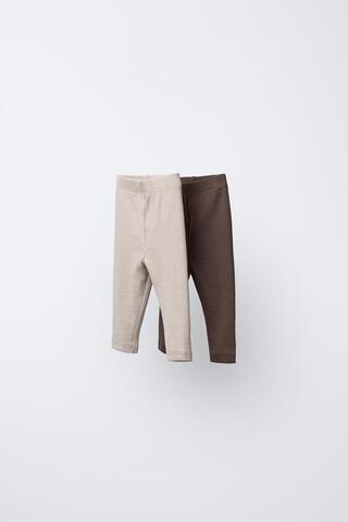 ZARA НАБОР ИЗ ДВУХ ОДНОТОННЫХ ЛЕГИНСОВ, КОРИЧНЕВЫЙ