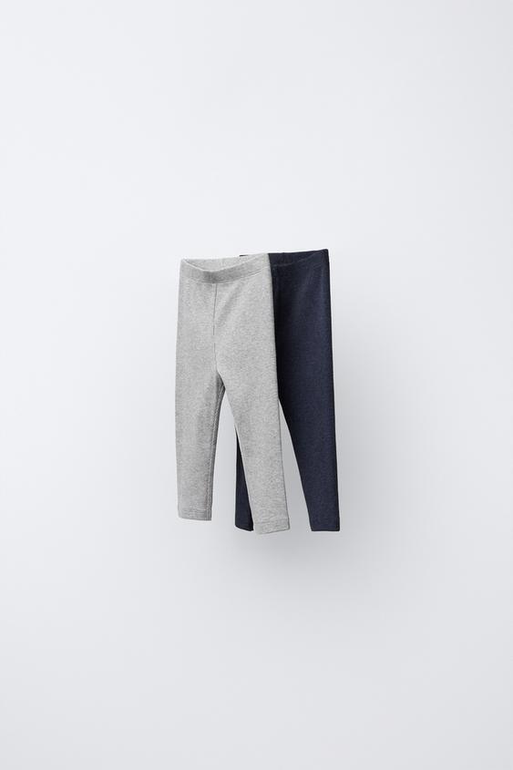 ZARA НАБОР ИЗ ДВУХ ОДНОТОННЫХ ЛЕГИНСОВ, СЕРЫЙ МЕЛАНЖ