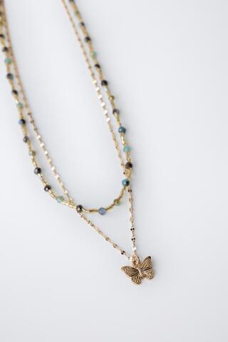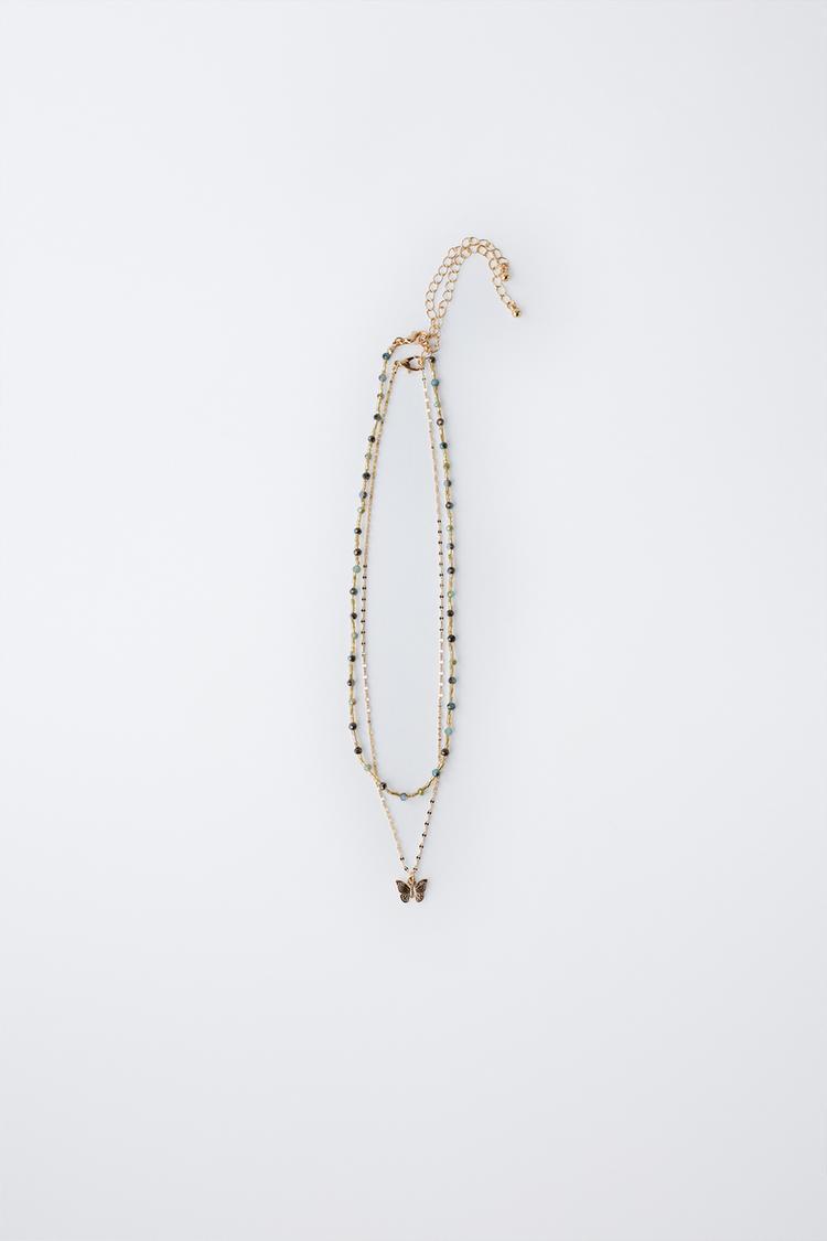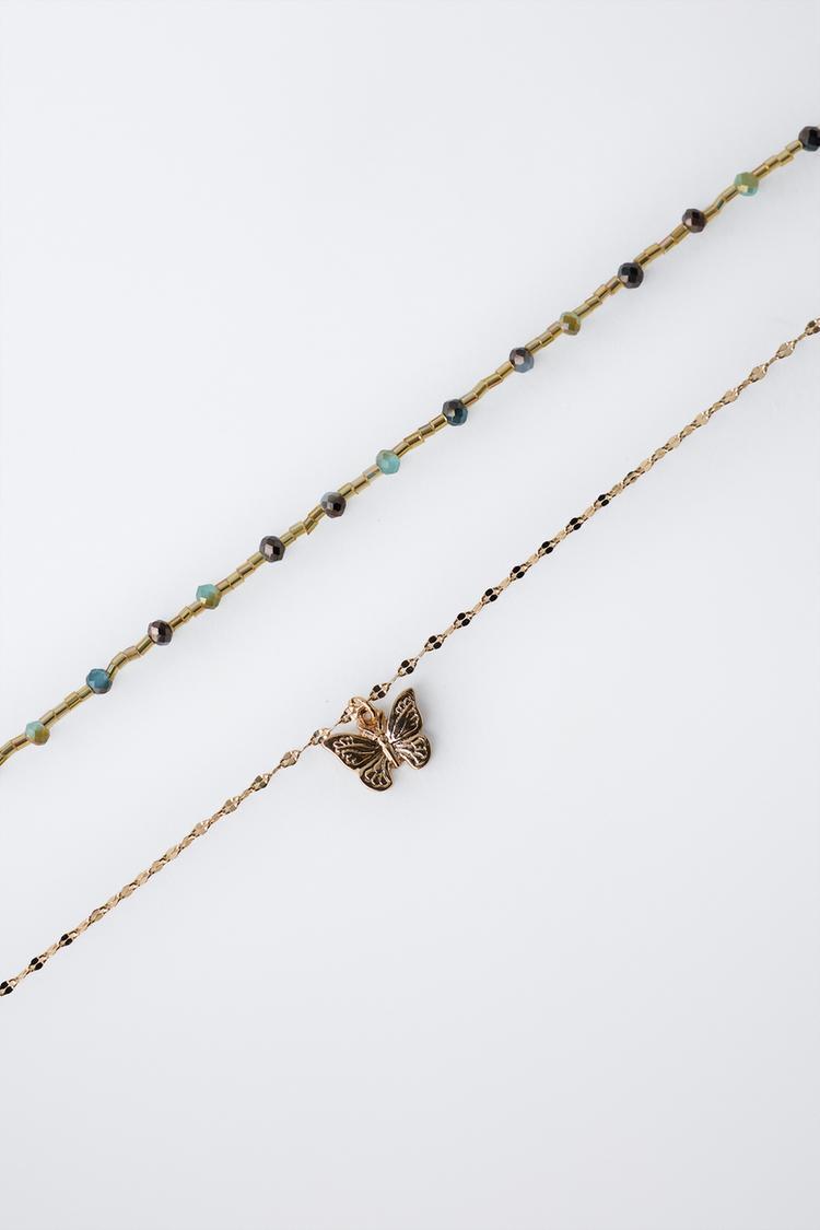 ZARA НАБОР ИЗ ДВУХ ОЖЕРЕЛИЙ С БУСИНАМИ И БАБОЧКОЙ, ЗОЛОТИСТЫЙ