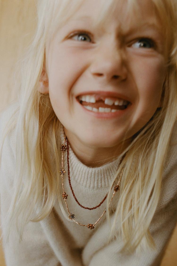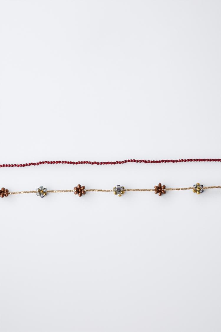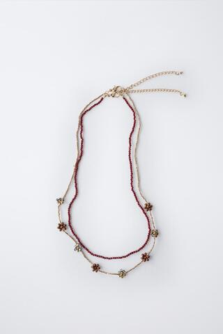 ZARA НАБОР ИЗ ДВУХ ОЖЕРЕЛИЙ С БУСИНАМИ И ЦВЕТАМИ, ГРАНАТОВЫЙ