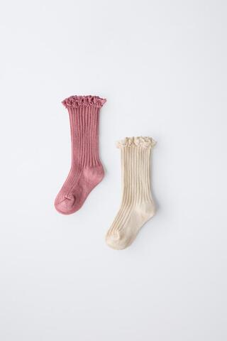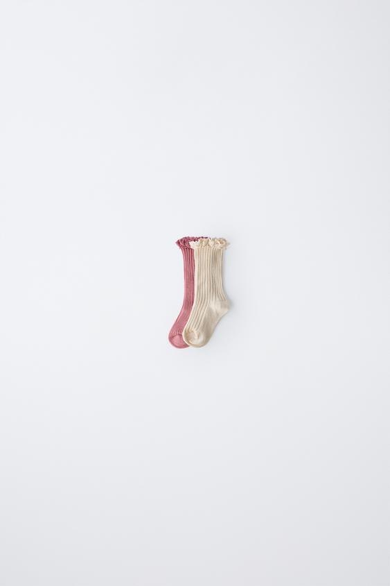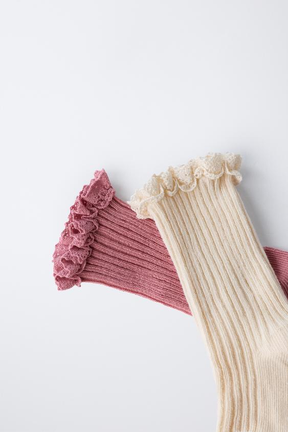 ZARA НАБОР ИЗ ДВУХ ПАР НОСКОВ С КРУЖЕВОМ, РОЗОВЫЙ/БЕЛЫЙ