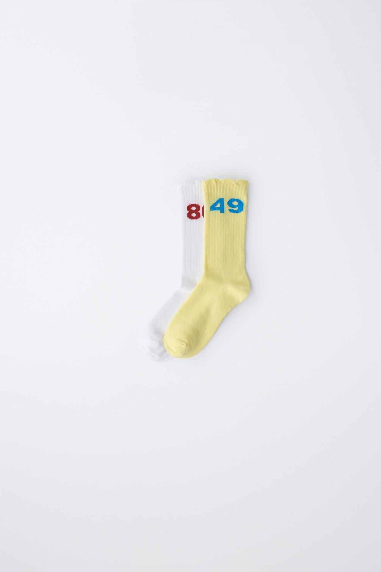 ZARA НАБОР ИЗ ДВУХ ПАР ВЫСОКИХ НОСКОВ С НОМЕРАМИ, РАЗНОЦВЕТНЫЙ
