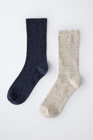 ZARA НАБОР ИЗ ДВУХ ПАР ВЫСОКИХ НОСКОВ С ПРИНТОМ «ПУГОВИЦЫ», СВЕТЛО-БЕЖЕВЫЙ