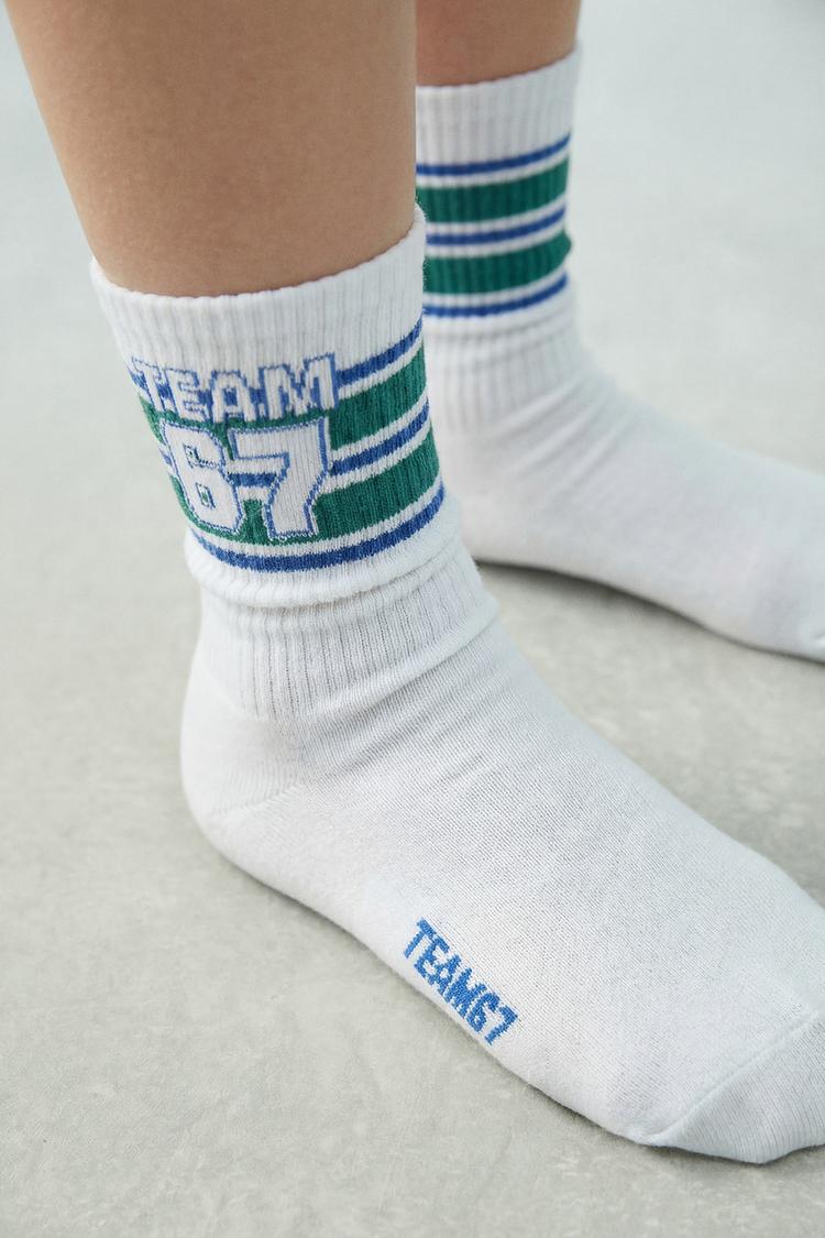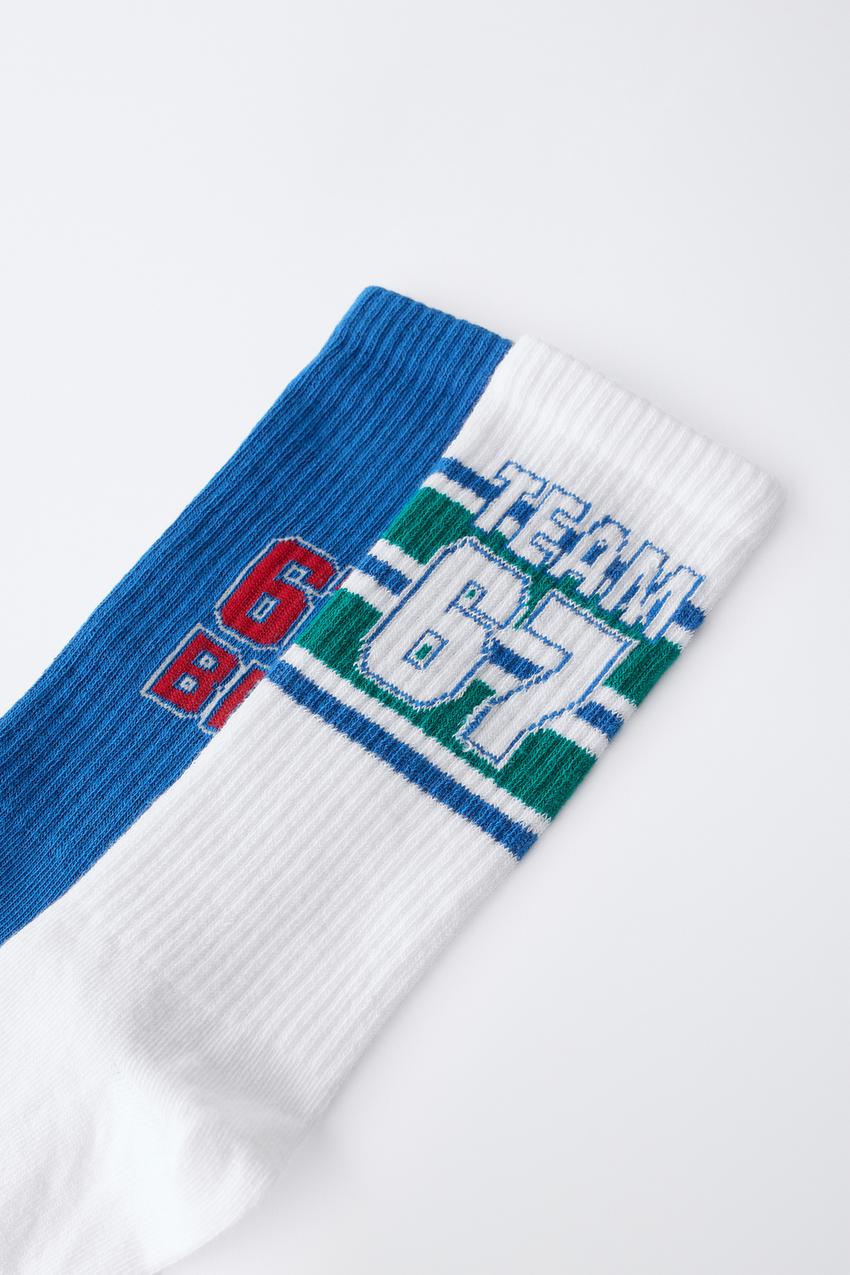 ZARA НАБОР ИЗ ДВУХ ПАР ВЫСОКИХ НОСКОВ С ЦИФРАМИ, ЯРКО-СИНИЙ